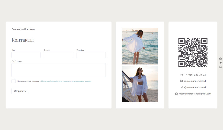 Адреса вашего офиса, магазинов, телефоны, ссылки на соцсети и форма обратной связи.